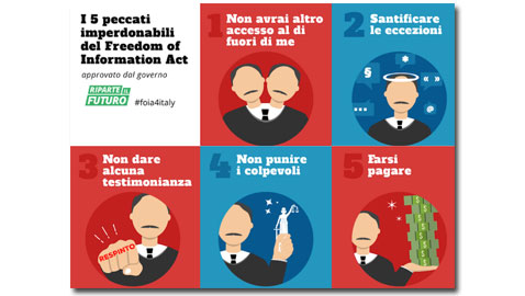 L’Italia è 97esima su 103 Paesi in materia di diritto di accesso all’informazione e, secondo l’ultimo rapporto di Transparency International, penultima in Europa e 61° nel mondo per corruzione percepita. Il Presidente Renzi e il Ministro Madia avevano promesso pubblicamente di occuparesene (1) e, dopo vari rinvii, il 20 gennaio 2016, il Governo ha approvato il decreto attuativo della riforma della Pubblica amministrazione che porta il nome di Freedom of Information Act italiano. Ma a una settimana di distanza dal voto in Consiglio dei ministri, il decreto sulla trasparenza non è ancora stato reso pubblico, mentre la bozza diffusa dalla stampa appare assai deludente e inefficace (2) Pubblichiamo la petizione di Riparteilfuturo, che invitiamo a sottoscrivere,> vai alla petizione e i 10 punti irrinunciabili perchè la Legge sulla trasparenza si possa ddefonire un Freedom of Information Act (dal sito di Riparteilfuturo):