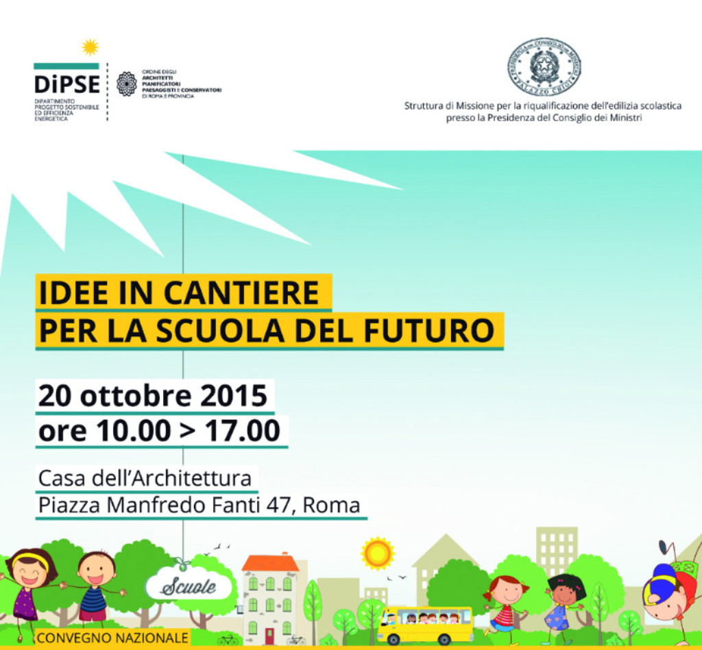 Si terrà il 20 ottobre alla Casa dell’architettura,in piazza Manfredo Fanti, il convegno “Idee in cantiere per la scuola del futuro”, organizzato dalla Struttura di missione per l’edilizia scolastica della Presidenza del Consiglio dei ministri e dal Dipartimento “Progetto sostenibile ed efficienza energetica” dell’Ordine degli architetti P.P.C. di Roma e Provincia.