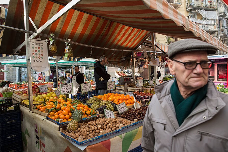 Torino: il mercato di piazza Foroni. La piazza, che in passato è stata ribattezzata piazza Cerignola a causa della grande presenza di immigrati dal sud Italia, si trova nel quartiere “Barriera di Milano”, storica periferia operaia nella zona nord della città. Foto di Lorenzo Palmieri