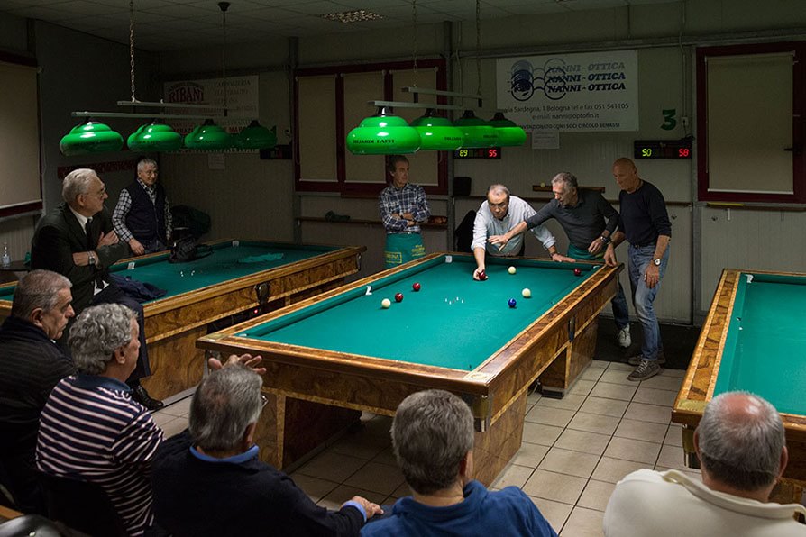 Bologna: una partita a biliardo al circolo Arci “Benassi”, il più antico della città. Foto di Lorenzo Palmieri