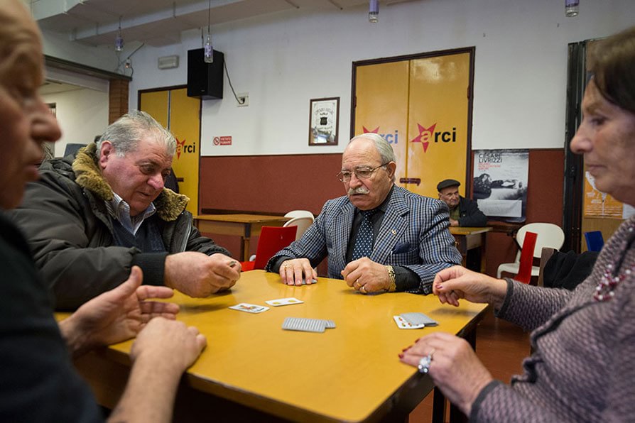 Milano: il circolo Arci “Bellezza”, il più grande della città, dove gli anziani giocano a carte. Foto di Lorenzo Palmieri