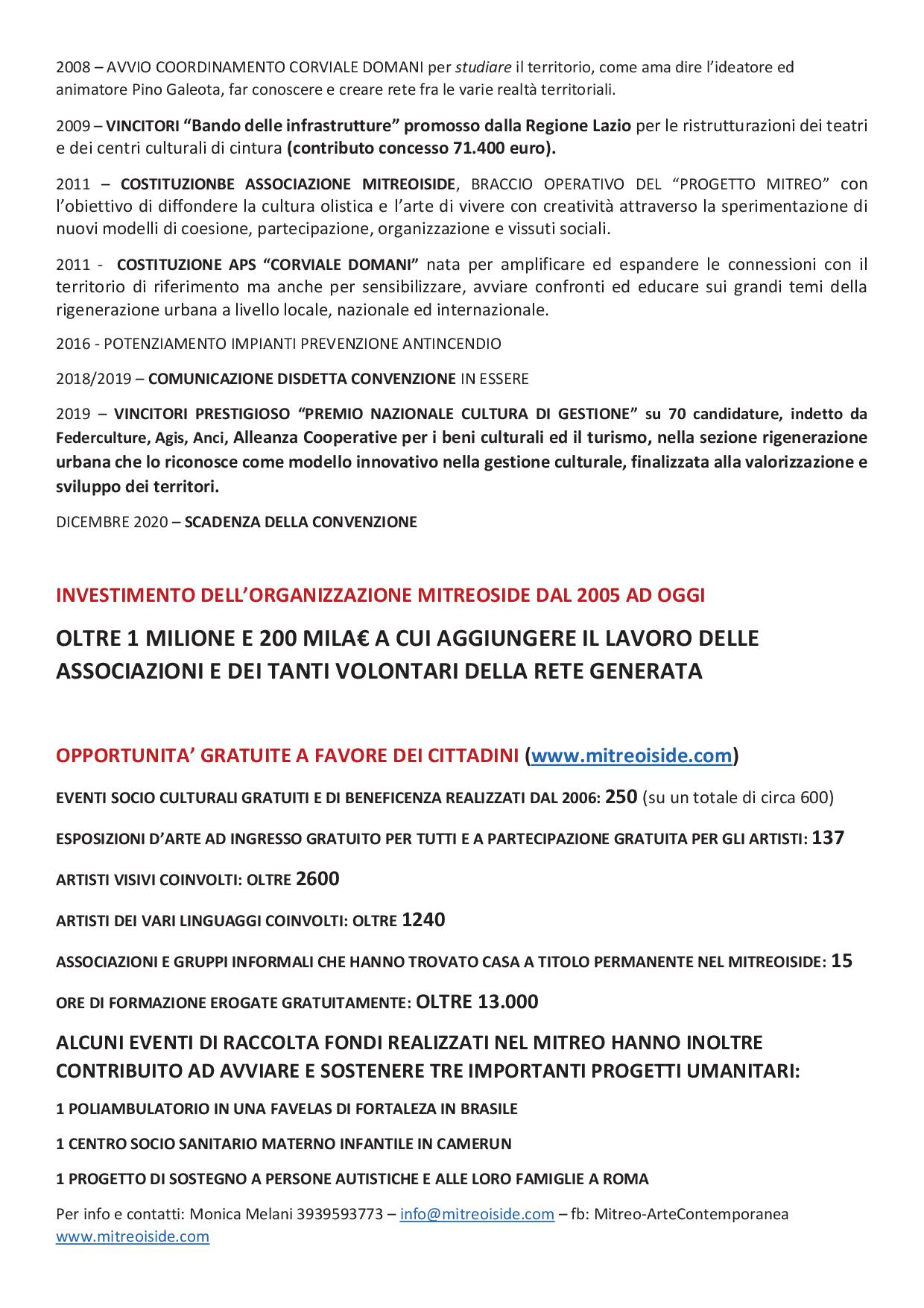 Il Mitreo in questo 2020 è stato quasi sempre serrato a causa di forza maggiore per il Covid 19 che ne ha imposto la chiusura. Il risultato è che nessuna delle attività previste sono state svolte con danni sia economici che per quelle risposte quotidiane che dava alla comunità del Corviale e non solo.